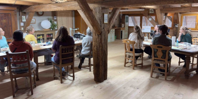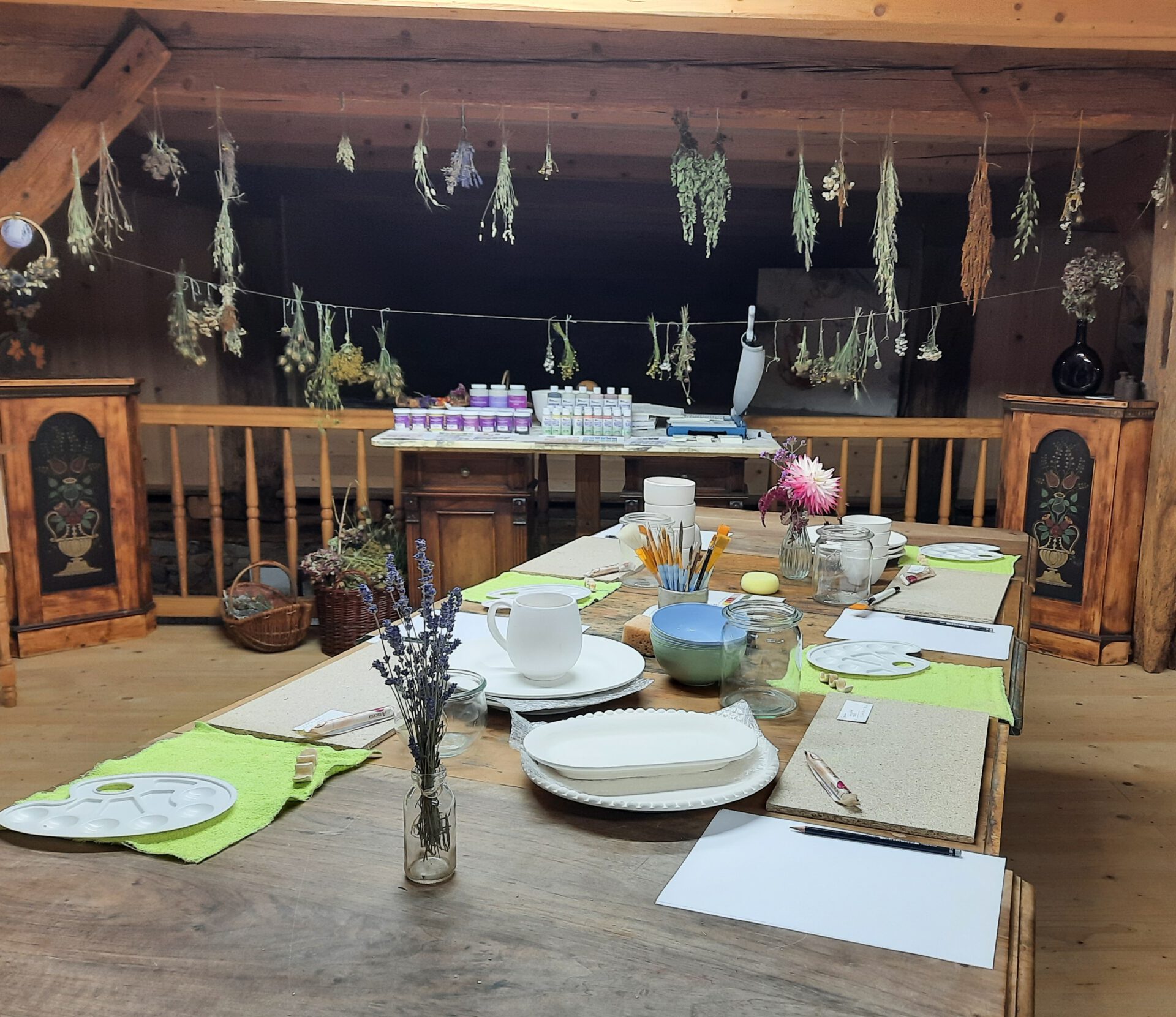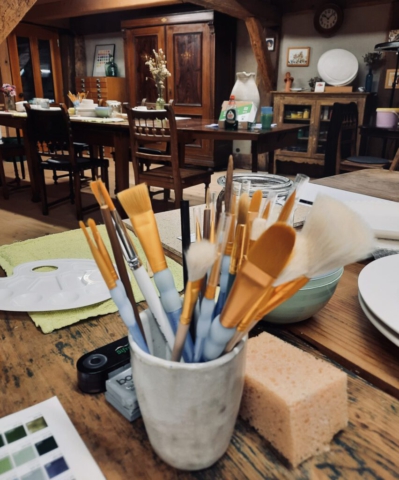 Das Atelier im Brunnenhof ist ein offener, persönlicher Ort für Menschen, die sich Zeit für kreatives Arbeiten nehmen möchten. In ruhiger Atmosphäre entstehen hier Kunstkurse für Erwachsene, offenes Atelier und Formate wie Keramik bemalen.
